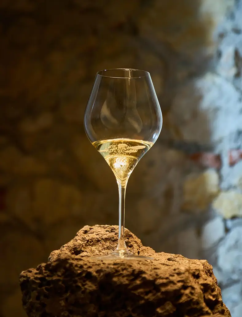 Elegant und mineralisch mit Aromen vonZitrusfrüchten und grünen Äpfeln,Perfekt balanciert durch eine lebendige Säure.